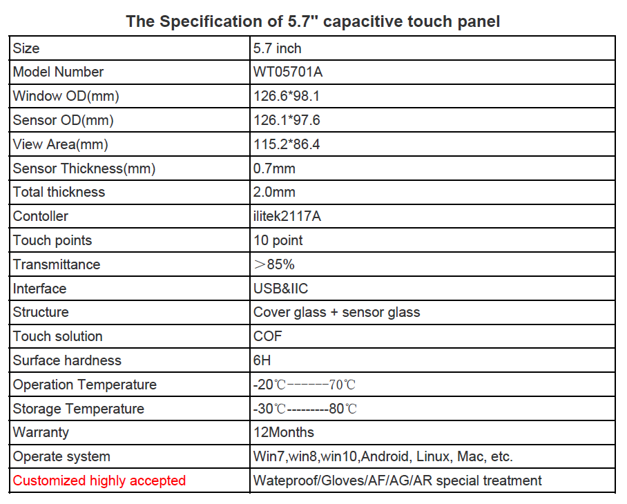 5.7英寸PCAP G+G