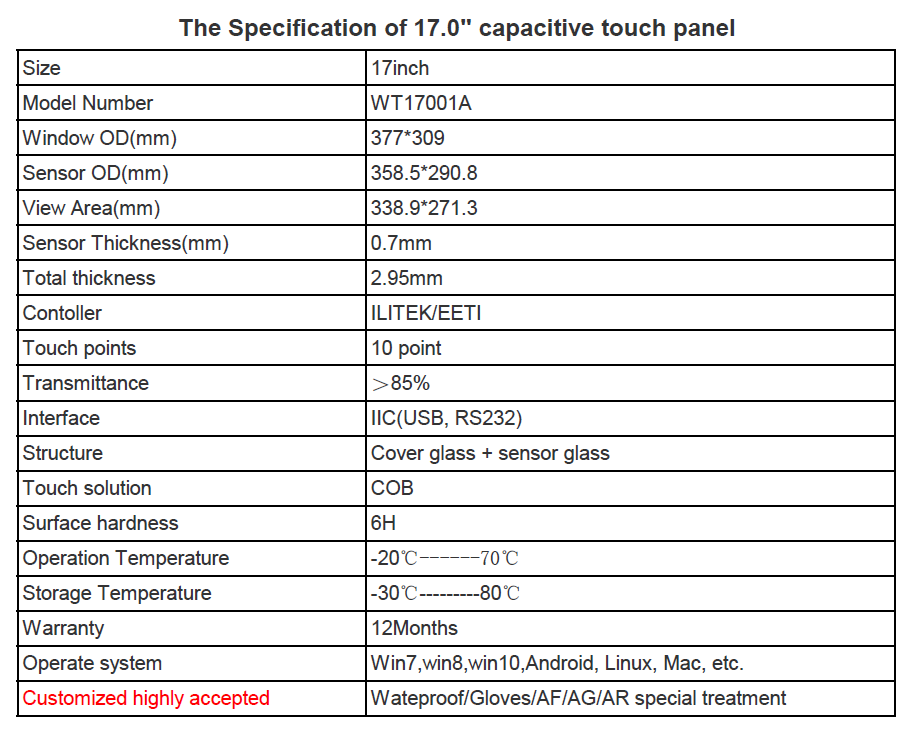 17寸电容触摸屏面板 正屏